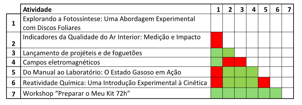 Os emparelhamentos de atividades marcados em verde são possíveis;